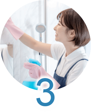 事前に清掃する日程・ご連絡方法を擦り合わせ、清掃作業を行います。清掃業者がお伺いする際には駐車スペース・作業スペースの確保をお願いしております。